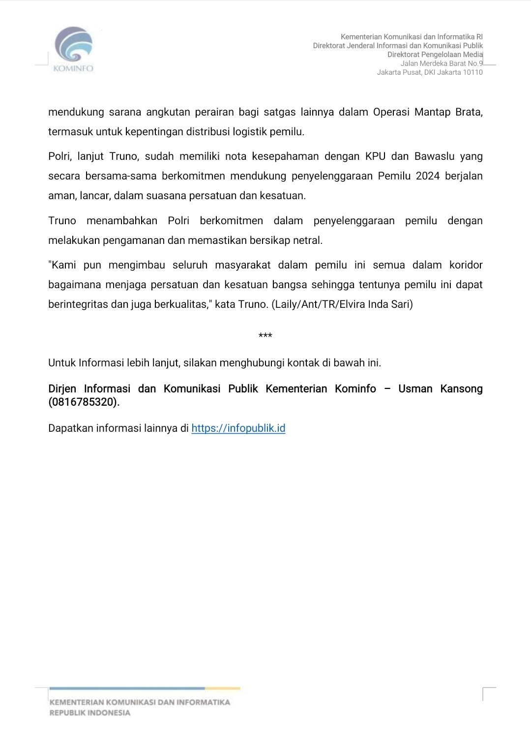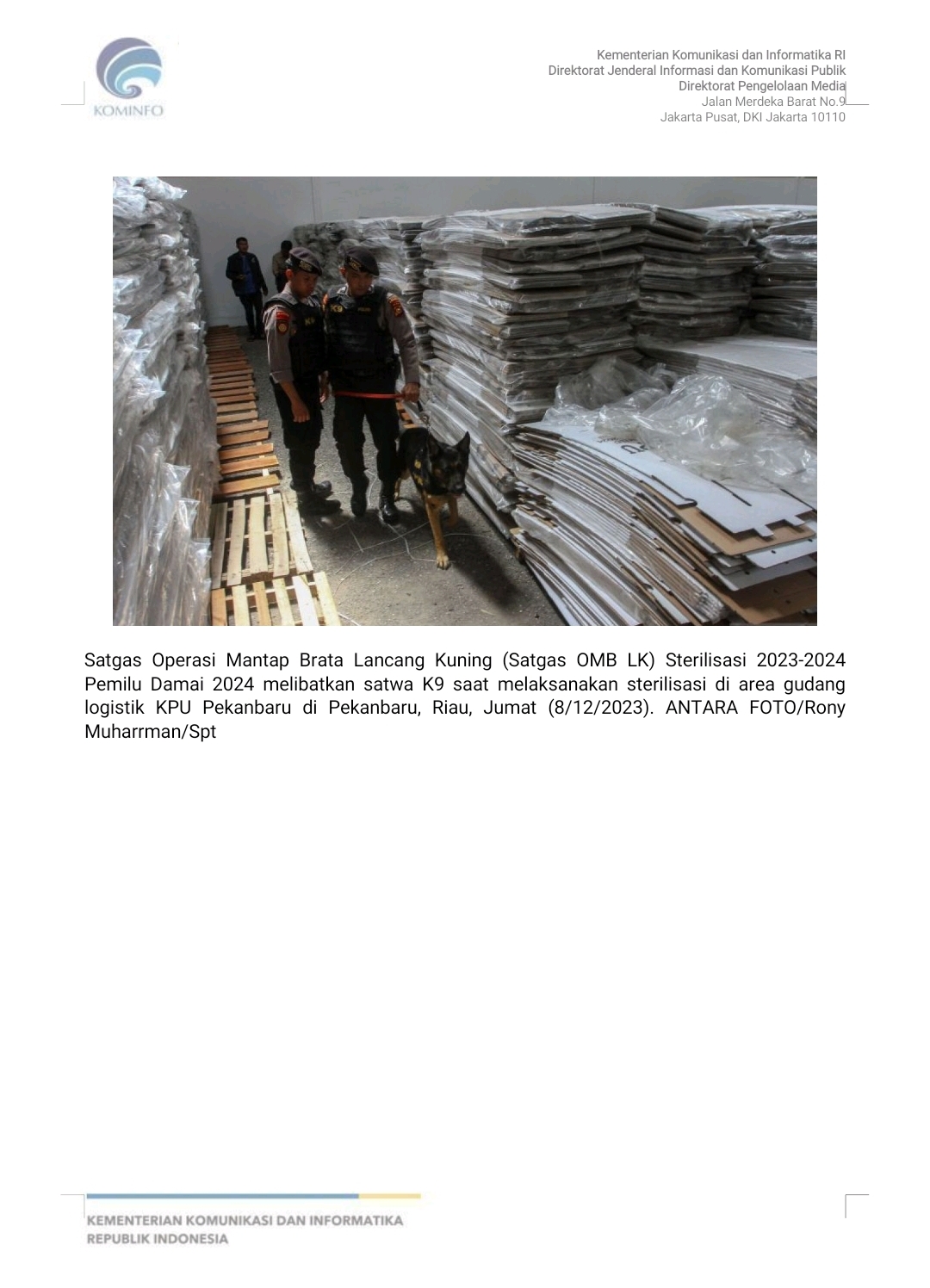 [Siaran Pers Kemenkominfo] Polri Pastikan Kesiapan Pengamanan Logistik Pemliu