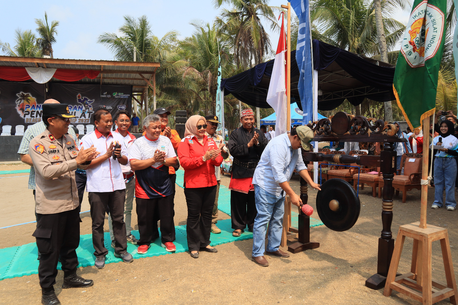 Bupati Pangandaran, H. Jeje Wiradinata membuka Kejuaraan Pangandaran Pencak Silat Beach Championship Tahun 2023 di Panggung Terbuka Dimensi Sunset ...